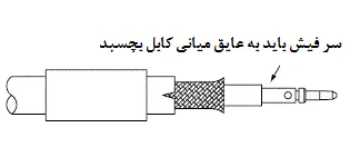 3- مغزی فیش را مانند تصویر بر روی مغزی کابل قرار دهید. توجه داشته باشید که سر فیش حتما به عایق داخلی کابل بچسبد.