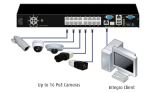 - NVR POE: دستگاه NVR شما میتواند دارای خروجیهای POE باشد. در این صورت کار شما برای نصب دوربینها به مراتب سادهتر خواهد شد. کافیست کابل شبکه هر دوربین را به طور مستقیم به پورت POE دستگاه NVR متصل کنید. این کار تنها در صورتی ممکن است که شما برای هر دوربین یک کابل مجزا استفاده کنید. در صورتی که بخواهید کابلها را در طول مسیر به سوئیچ وصل کرده و مجموع آن را به NVR متصل کنید، باید از سوییچ POE استفاده کنید.