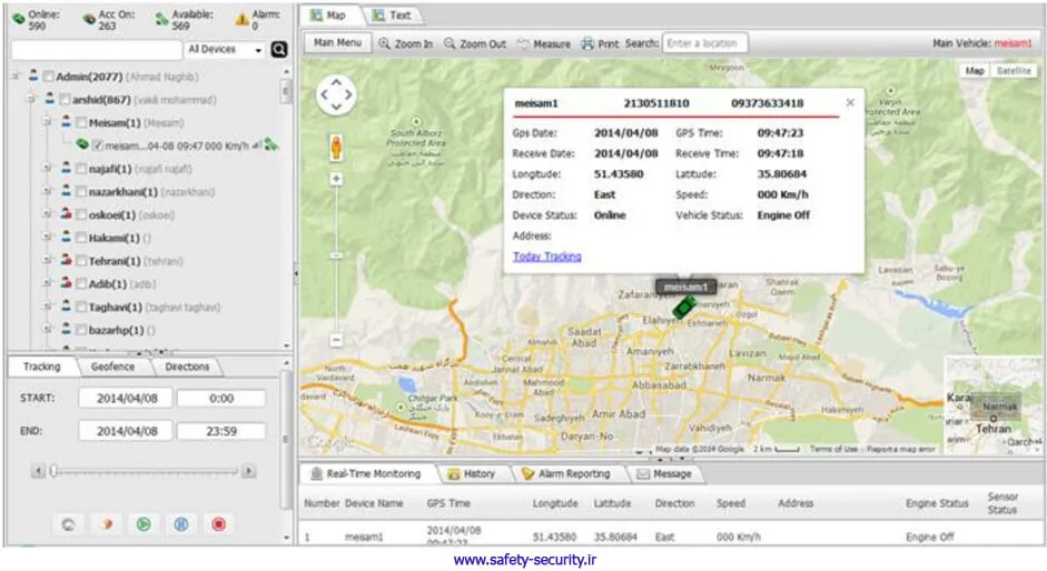 موقعیت دستگاه را در نقشه گوگل مشاهده نمایید. با قراردادن کل لینک روبرو در اینترنت اکسپلورر از موقعیت خودرو بر رو نقشه گوگل مطلع میشوید. |