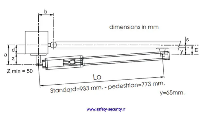 ابعاد و بخش‌های اصلی جک درب پارکینگ هیدرولیک FAAC مدل 422 در شکل و جدول زیر شرح داده شده است: