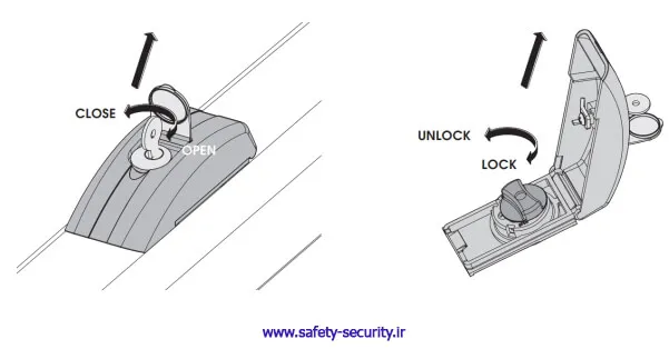 ابتدا درپوش خلاص‌کن را به کمک کلید مخصوص باز نمایید. سپس پیچ خلاص‌کن را مطابق شکل زیر بچرخانید تا دستگاه در وضعیت خلاص (UNLOCKیا قفل (LOCK) قرار بگیرد .