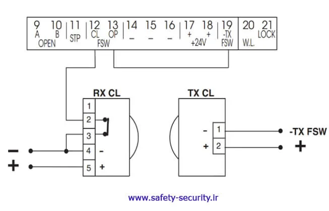 • قفل برقی به 18 و 21 متصل شود.
