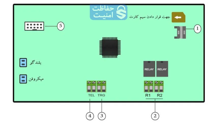 اگر از آژیر یا برد آژیر استفاده میکنید، سیمهای آن را با رعایت جهت صحیح به ترمینال SIR وصل کنید.