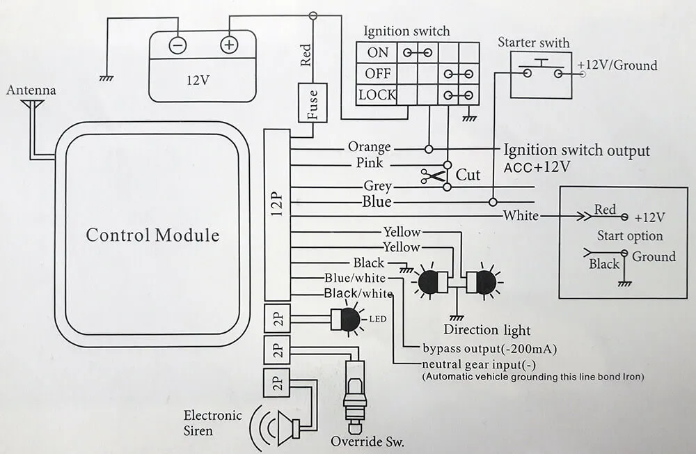 وقتی دزدگیر فعال یا غیر فعال باشد، برای 3 ثانیه(برای ریموت یک طرفه) دکمه “🔔/⚡️” را فشار داده و نگه دارید، سیستم وارد حالت استارت موتور می شود و ریموت کنترل سه بار به صدا در می آید.بخند از این که موتور با موفقیت شروع به کار کرد، ریموت کنترل دوباره سه بار به صدا در می آید. ویبراتور ریموت کنترل 4 بار می لرزد تا به راننده یاد آوری کند و آیکونLCD به صورت شکل 4 خواهد بود.LED قرمز بر روی ریموت کنترل روشن می شود، اگر ریموت کنترل نتواند موتور سیکلت را استارت(روشن) کند، به این دلایل خواهد بود: