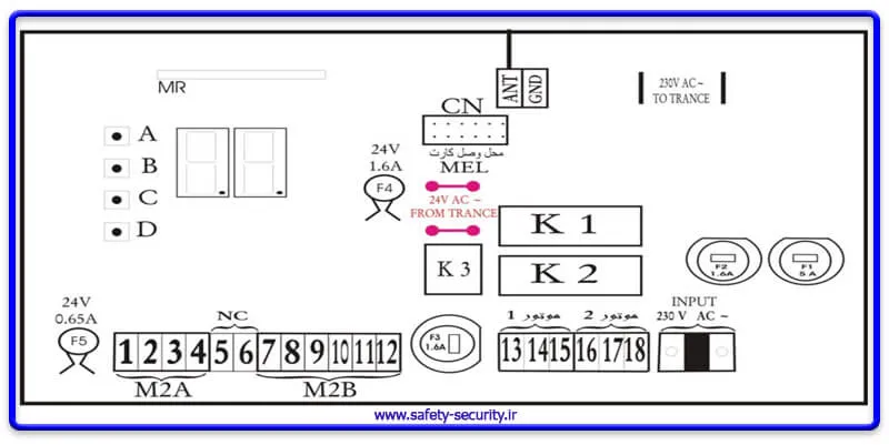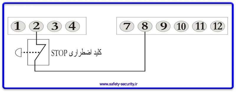 نکته مهم: چنانچه از کلید اضطراری استفاده ننمودید باید حتماً ترمینالهای 2 و 8 را با یـک جامپـر بـه یکـدیگر متصل کنید.