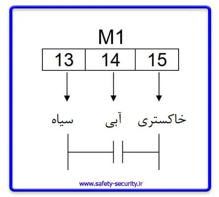 موتور راست (M2): اگر موتور را بگونهای قرار دهید که برآمدگی موتور جک رو به بالا، سـوئیچ آن دیـده شود و بازوی جک به طرف راست باز شود، این موتور، موتور راست نامیده میشود که سیمبنـدی آن بـه ترمینالها مطابق شکل زیر انجام میشود.