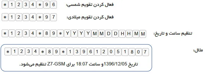 نکته: توجه داشته باشید که تقویم شمسی Z7-GSM سالهای کبیسه را نیز پشتیبانی میکند.