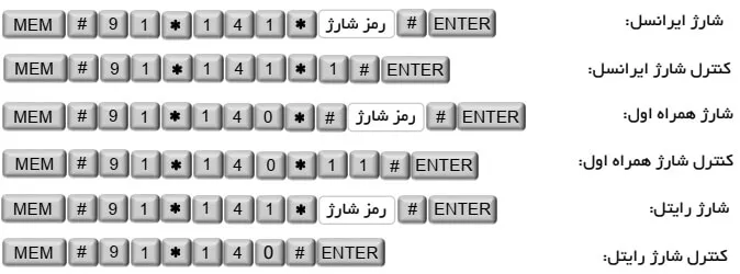 اجرای دستورات شبکه و شارژ سیمکارت از روی دستگاه: