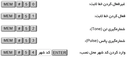پس از وارد کردن دستور “90 # MEM“، پیغام “OLD PASSWORD” روی LCD نمایش داده شده، رمز قدیمی را وارد کرده، سپس پیغام “NEW PASSWORD” ظاهر شده، اکنون رمز جدید مورد نظرتان را وارد نمایید. پس از آن با نمایش “ENTER AGAIN“ درخواست میشود که رمز جدید را مجدد وارد نمایید.
