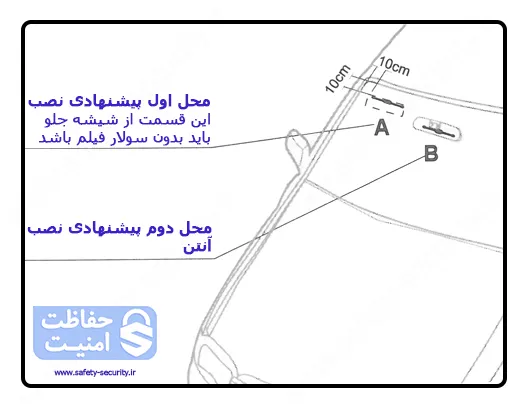 آنتن اصلی دستگاه را مطابق شکل زیر در دو نقطه میتوان نصب نمود (A و B).