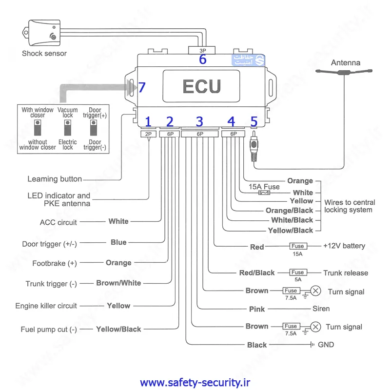 در نقشه استیل میت مدل 888E PKE کیت دزدگیر دارای 8 کانکتور به شرح زیر میباشد: