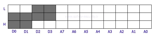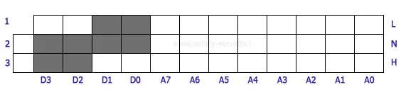 - چهار جامپر داخل کادر (D0 ، D3 ،D2 ،D1) را مانند شکل و بقیه جامپرها را به صورت دلخواه بچینید، سپس چشم را روشن نمایید.