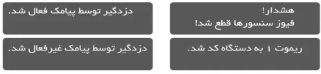 - ذخیره و نمایش 200 گزارش ارسالی از دزدگیر به همراه ساعت و تاریخ